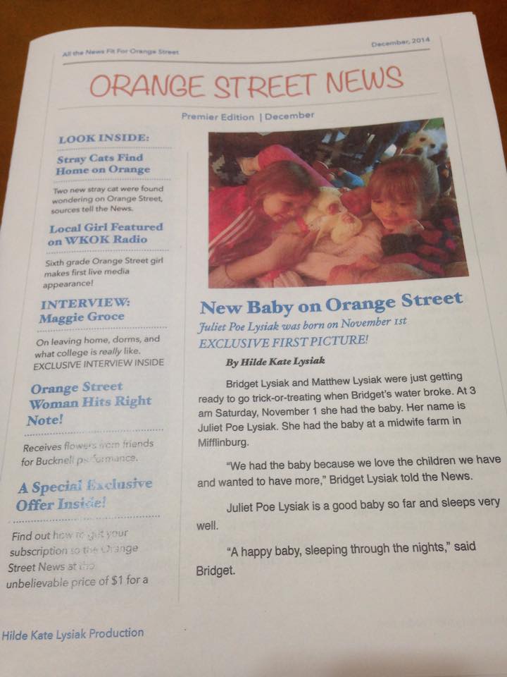 Dear Readers, Happy New Year! I was so excited to deliver the first issue of the Orange Street News. Seeing it in my hands really made all my hard work worth while. We already have twelve subscribers!