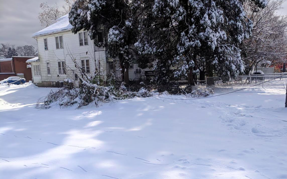 The line can be seen dangling by through the street, partially covered in snow, where children often play.