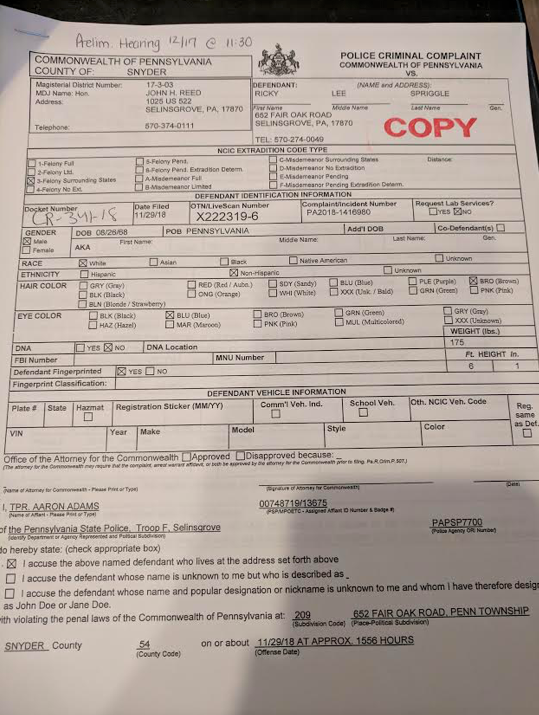 “She related to me that he grabbed ahold of her and slammed her head against a wall and took her inside of his bedroom. […] Ricky grabbed her by the neck and took his cordless drill and jammed it into her stomach and arm. […] related that he had turned the drill on while he had pressed it into her stomach,” read the criminal complaint.