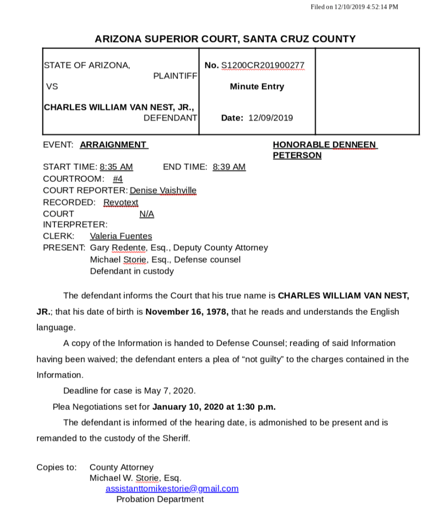 Van Nest was ordered to remain in custody of the sheriff. The next hearing will be on January 10 at 1:30 pm.